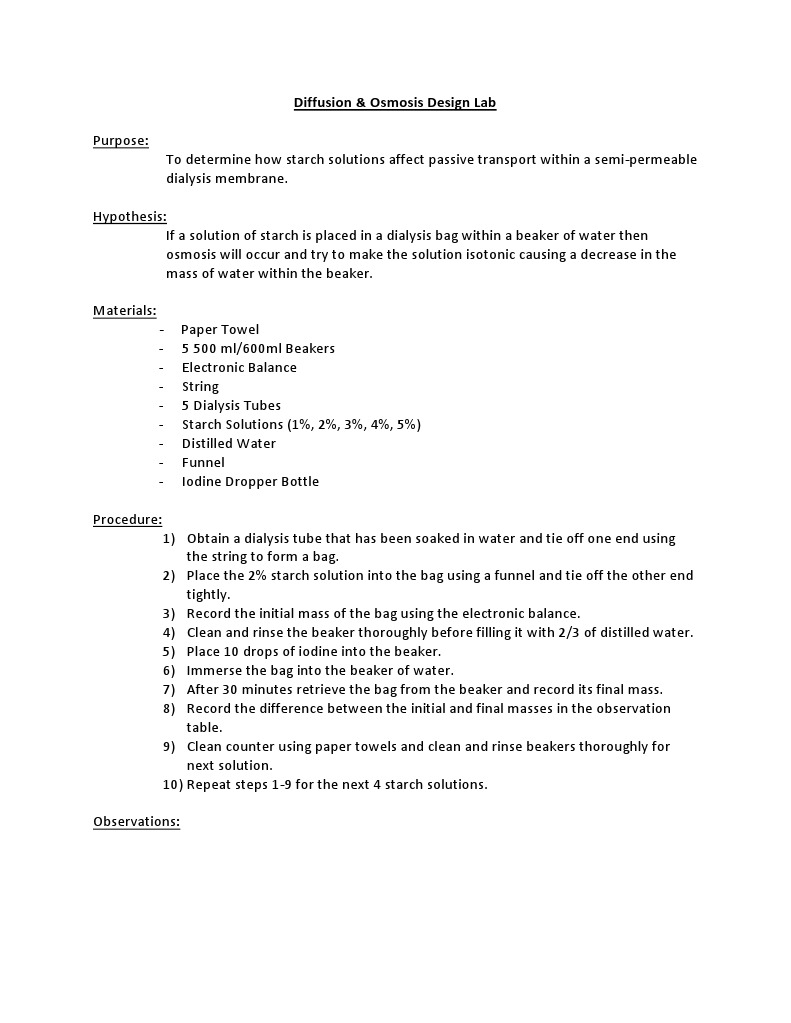 Objectives upon completion of this lab activity, you should be able to: In this lab, you will investigate the osmotic behavior of a cell. This is also due to osmosis, but in the opposite direction. Transport can be either passive or active. Observing osmosis lab key background information:
